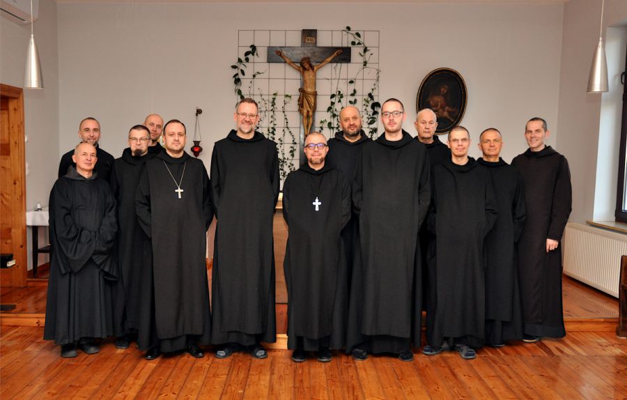 The community has 13 monks. Two of them are in the novitiate. The other two are in the probation period before the change of the stability, one with the Trappists / England, the other with the Benedictines in Sampor / Slovakia.